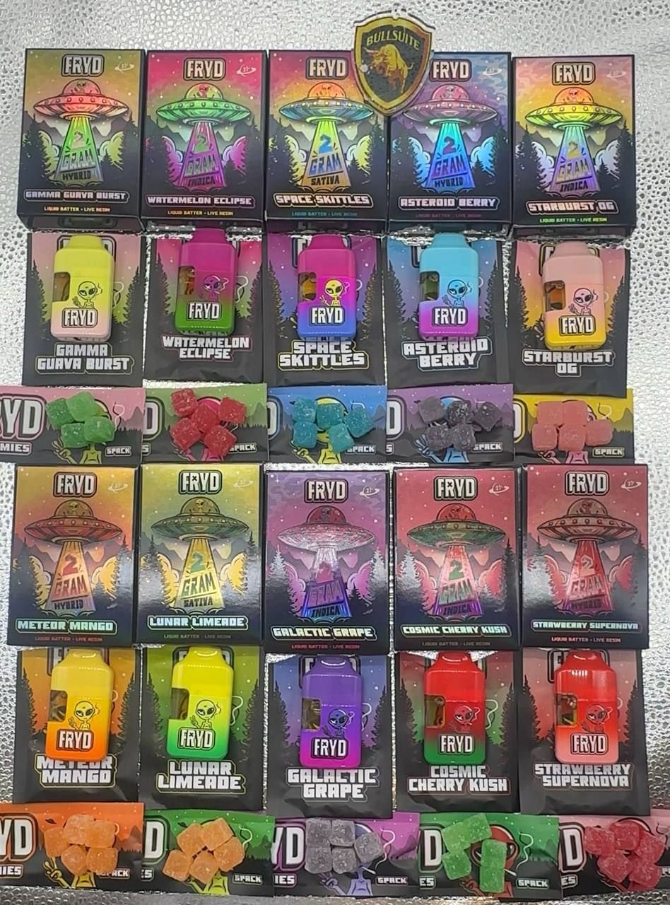 The FRYD Dual Pack includes a rechargeable vape and gummies, both made with liquid batter and live resin for a strong, full-body high. The vape is sweet and smooth, while the gummies are fruity and delicious. Use it to relax, get creative, or just chill. The vape hits fast, and the gummies last longer—together, they deliver a high that feels great from head to toe.